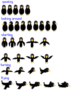 In this example sprites for crow animation are drown for a html5 education game.
