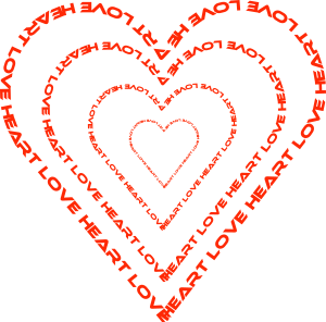 A heart don by two types of words "LOVE" and "HEART"... it´s a outline figure..