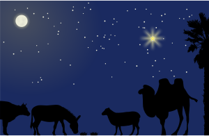 ass、bethlehem、camel、christmas、cow、donkey、landscapes、manger、moon、nativity、palm tree、sheep、sky、star、xmas