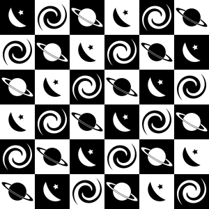 Seamless chequerboard pattern with a space theme.