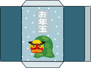 Just print, cut, fold and glue (or tape!) and you have an instant money envelope to use for giving money to someone on new years. (If you are wondering about that thing on the card, that is a "Shishi" what Japanese people use for the "Lion Dance" to bring in the new year!)