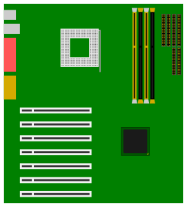 A typical computer motherboard.