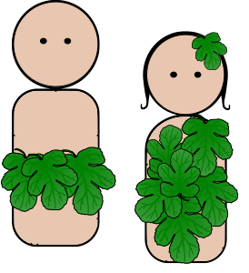 Peg people Adam and Eve covered themselves with fig leaves.