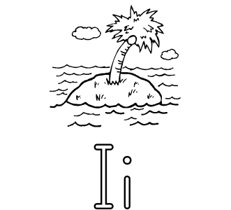 Letter I for island (isla) for a set of the Spanish alphabet for colouring