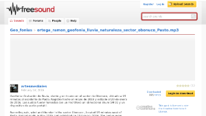 Recording rain, wind and thunder in the sector Obonuco , located 15 minutes west of Pasto. Record made in May 2015 and published on 29 January 2016. The audios were taken with a uni -directional microphone Shure SM 81 and a portable audio device.