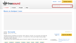 Sweeping beans scattered on the floor onto a plastic dustpan. You can hear the sweeping and then how the beans hit the plastic. It can work for other small objects being swept, like beads, seeds and such.