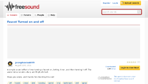 A simple sound effect of me turning a faucet on, letting it run, and then turning it off. The water noise sounds sharp and high pitched.