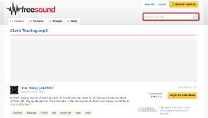 A brief ripping sound of tearing cloth. It could also be used for sticky tape being yanked off the roll. (My apologies for the bird calls in the background, field-recordings are difficult in a rural area.)