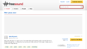 Wet peas dropped in a glass bowl. Recorded through Audacity with an Audio Technica A2020 microphone. I reduced some backround noise and sent it through a high pass to reduce low frequencies.