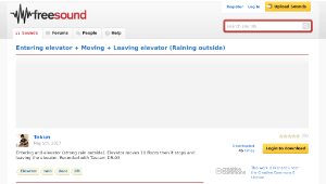 Entering and elevator (strong rain outside). Elevator moves 10 floors then it stops and leaving the elevator. Recorded with Tascam DR-03