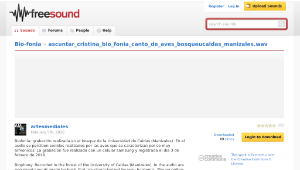 Biofonía: grabación realizada en el bosque de la Universidad de Caldas (Manizales). En el audio se perciben sonidos realizados por las aves que se caracterizan por se muy armónicos. La grabación fue realizada con un celular samsung y registrada el día 3 de febrero de 2016.