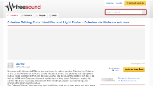 Recorded with Lifecam hd3000 so you can hear it's native speaker. Pointing the Colorino at the sunny window for a second or two moving it around and pressing the llight probe button. I also switched it from low to high volume. You also hear the battery low beep. as well as NVDA with Eloquence formant synthesizer talking about Goldwave, saying the current file that's recording, untitled 29. Then holding it against various things and pressing the color identify button.