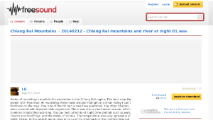 Series of recordings I made in the mountains in the Chiang Mai region, Thailand, near the border with Myanmar. All recordings were made around midnight in a small valley I canât find back on the map. One side of the hill had a small tea plantation, the other hillsides were covered with impenetrable vegetation. There was also a small water stream, which is where I made this recording. You can hear all kinds of night-time animals such as owls, insects and loud frogs; and the water, of course. The temperature was very agreeable at night. I listen to the recordings to relax or to cast my mind back to the mythical tropical rainforest. Sony PCM-D50