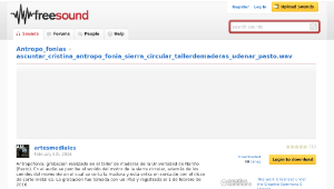 Antropofonía: grabación realizada en el taller de maderas de la Universidad de Nariño (Pasto). En el audio se percibe el sonido del motor de la sierra circular, además de los sonidos del momento en el cual se corta la madera y esta entra en contacto con el disco de corte metálico. La grabación fue tomada con un iPad y registrada el 1 de febrero de 2016.