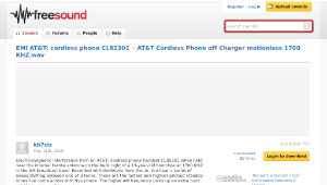 Electro-magnetic interference from an AT&T; cordless phone handset CL82301 when held near the internal Ferrite antenna on the back right of a 13-year-old boombox at 1700 KHZ in the AM broadcast band. Recorded with Goldwave from line-in. You hear a series of beeps shifting between one of 3 tones. These are the fastest and highest pitched standby tones I've come across with this phone. The higher AM frequency picks up an extra buzz not there at lower frequencies.