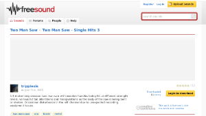 1.5 meter long crosscut two-man saw with wooden handles being hit at different strength levels, various hit tail alterations and manipulations as the body of the saw is being bent or shaken. Occasional disturbance in the left channel due to unexpected recording equipment issues.