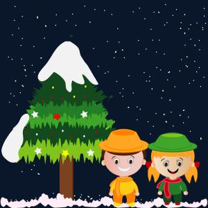 cartoon、Christmas、kids、snow、stars、tree