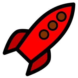 Icon of a space rocket (red).