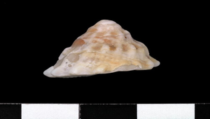 形態特徵:殼呈圓錐狀,體螺層不膨脹,殼質厚,灰白色。周緣具有一列齒輪狀的突起,殼表有細顆粒組成的螺肋。殼底有鱗片狀的螺肋。殼口完整,具真珠光澤。