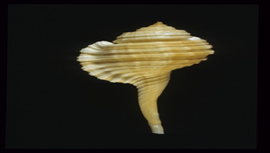 形態特徵:貝殼米白色,略呈球形,螺肋小而縱肋更微弱,最大特色是縫合溝很深,水管溝也頗長,殼長7.5cm