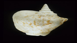 形態特徵:殼形:厚實,殼略方。螺塔高,修長。殼表粗糙,口面平滑。螺層有微凸的瘤;體層有不發達的螺肋,及2-3個小瘤。外唇外翻加厚,且低於螺頂。軸唇平滑,滑層厚。殼色:乳白色有不規則的棕斑,殼口白色,外唇緣有棕色塊,軸唇白色至橙色。大小:大型,100-170 mm。 (126.7×83.4 mm)