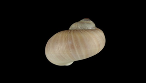 形態特徵:殼近橢圓形,質厚,殼頂高。殼表淺灰色到褐色,縫合線下有放射狀皺褶,體螺層上有兩列較淺的環帶。臍盤很大,白色,佔了大部分的臍孔面積,周圍剩一點小溝。殼口半圓形,白色。口蓋角質,白色,半圓形,與殼口等大。