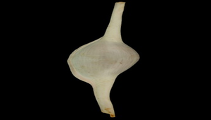 形態特徵:外形特殊,前後兩端極為延長,中間膨脹如長形菱角,殼表光滑,呈粉紅色或淡褐色,其外形酷似紡織工具中的梭子,因而也被稱為梭螺(Shuttle Volva)
