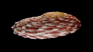 形態特徵:螺塔明顯,殼表具許多明顯的螺肋且為白色,螺肋之間有還1-2條不明顯的螺肋。殼口外緣有許多細肋,內唇滑層發達具有紅色的塊斑,內唇殼緣有齒狀突起。口蓋為白色,上有顆粒狀突起。
