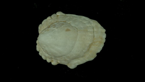 形態特徵:笠螺型,圓形,質厚。殼白色至紅褐色,無殼毛,殼頂明顯,近後端,殼表具明顯放射肋。殼內白色,邊緣紅褐色、具光澤、陶質。