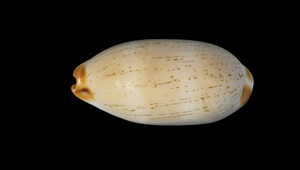 形態特徵:殼呈長卵形,殼表為米褐色,並有狀如雨絲般的細黑縱紋,殼口前後兩端略帶橙紅色,殼口狹窄細長,而有較細的殼齒