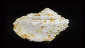 形態特徵:殼形:殼中等厚,方型略圓。螺塔高,螺層有瘤、螺紋及縱紋;體層除了肩部有發達的肩瘤外,尚有3-5排較小的瘤,有螺紋。外唇外翻加厚,呈波浪狀,尤其是前端Stromboid notch 處更明顯,有發達的齒狀襞。軸唇滑層薄,但幾乎覆滿整個口面之體層。殼色:乳白色底有不規則的褐斑及條紋。殼口黑褐色,軸唇淡黃色或白色大小:中型,38-70mm。(63.3×39.4 mm)