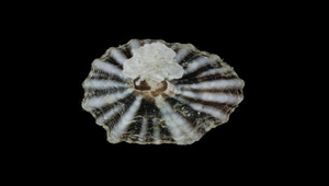 形態特徵:星狀笠螺型。殼頂較高。殼表黑色,放射肋為白色。約具10條粗肋,肋突出殼緣,肋間有許多小的肋,水管溝之肋不明顯。殼內深褐色,周緣為白色,陶質,具光澤。