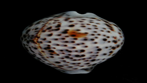形態特徵:殼質厚重,殼表圓鼓而膨大,底部微凹。殼表極光滑,殼色介於淺紅和褐色間,並散佈有大小不等的黑褐色斑點,底面微白色