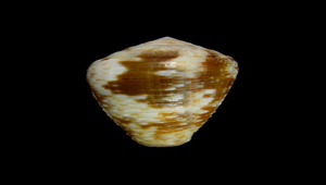 形態特徵:殼呈雞心形,螺塔平緩高起,體螺層螺肩圓滑,殼頂尖,殼口長條形。殼色為白色褐色斑相嵌,體螺層亦有橫向排列的褐色虛線。