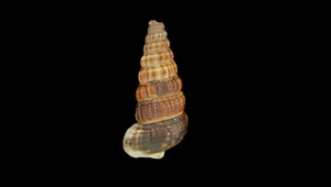 形態特徵:殼呈細長錐形,殼頂常斷裂,螺層略膨脹,縫合線明顯。殼外表褐色,摻雜白色帶。殼外表具明顯粗縱肋,規則排列於各螺層。殼口近圓形,白色底,具褐色斑。口蓋圓形,角質,具螺旋紋。