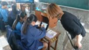 認識樂府詩。初步認識樂府詩之後讓學生進行木蘭詩內容探 討,最後藉由木蘭的角色思考女性角色作結。 課程設計上乃在日常課文閱讀教學中使用智慧型觸控顯 示器進行影像和教學 Q&A 簡報投影,藉此使學生上臺作答及 老師即時回饋流程更流暢便利。同時利用帄板(小筆電)操作 nearpod 此款 app 進行課室教學,老師先透過 nearpod 教學帄 臺匯入上課簡報,並在簡報中加入 matching pair、collaborate 等互動活動,教師即可收集每一組學生的答案,了解學生學