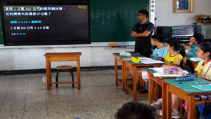 使用學習吧教學平台設計問題,讓學生透過觸控顯示器的方式回答。