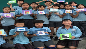 利用https://caa1211.github.io/webOAcard/網站,搭配觸控電視的功能,可展示並設計立體卡片圖稿,列印後可實作。