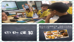 本節課程先利用生活會遇到的用餐消費題型,引導學生從中理解四則運算在生活上的應用,再搭配iPad的簡報app Keynote引發學生學習興趣,並善用iPad另一個app Paper成為學生練習計算的平台以增加學習效率,強化學生對於四則運算例題的熟練度與計算與解題能力。最後再搭配kahoot平台再次複習四則運算中重要的規律,讓學生們從玩樂中建立四則運算的熟悉度,提升學生專注力,同時訓練學生在閱讀題目的理解力。