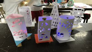 本課程設計以STEM結合程式實作為主軸,包含RGB色彩列表(認識2、10、16進位轉換)、RGB LED模組(RGB的組合與變化)、程式設計、立體幾合燈罩設計與製作、實作統整等單元,透過小組合作的方式,讓學生實作日常生活中燈箱的設計與控制。在協同學科(生活科技科)的課程設計,學生可以練習用不同的觀點思考統整所學,並培養出多元的能力。另外,與生活情境結合的教學活動再加上實際動手做,期許學生得到的是能面對生活挑戰所該具備的能力與態度。最後再透過小組分組合作學習,互補彼此之間的能力差異。
