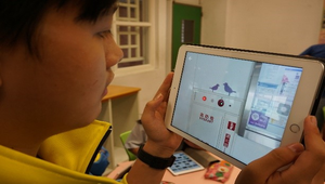 二、學生使用iPad進行課間活動,運用虛擬實境EduVenture VR App,讓學生尋找機捷車站裡的紫色小鳥。