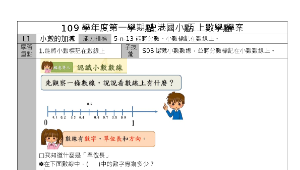 以科技輔助自主學習,自主學習模式設計之五年級上學期康軒第一單元小數的加減5-n-10能認識多位小數,並做比較與加、減 計算,以及解決生活中的問題。 s01-s04、5-n-13能將小數標記在數線上。 s03-s04學案