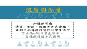 學習內容:INa-Ⅲ-8 熱由高溫處往低溫處傳播,傳播的方式有傳導、對流和輻射,生活中可運用不同的方法保溫與散熱。