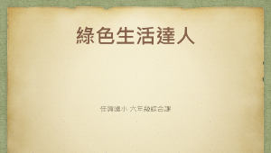 本課程主要說明綠色消費對環保的重要,希望學童能了解其重要性並落實於日常生活當中,於是藉由分組報告方式,結合學生的生活經驗,讓綠色生活不再只是紙上談兵。