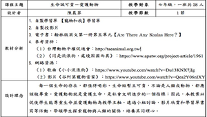 愛護動物就是愛護生命,是社會文明進步的一個指標。因此,本教案結合網路資源《小小流浪狗》歌曲以及《谷阿莫寵物當家》影片,以促使學生能尊重生命並愛護動物為教學主軸,配合英文教材內容的《動物》主題單字,透過小組討論,影片欣賞和學習單書寫等活動,帶領學生探索寵物與人類的關係,在培養其同理心的同時,也拓展學習英文的視野。