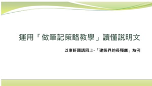 運用「做筆記策略教學」讀懂說明文-以康軒國語四上-「建築界的長頸鹿」為例