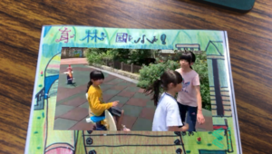 本教學活動為跨藝文、本國語之資訊融入彈性課程。學生繪製校園圖卡,拍攝介紹影片,再應用 MAKAR軟體連結影片與圖卡製作校園介紹磁鐵寄送新生作為迎新禮物。
