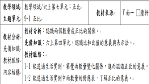 學習內容:N-6-6 比與比值:異類量的比與同類量的比之比值的意義。理解相等的比中牽涉到的兩種倍數關係(比例思考的基礎)。解決比的應用問題。