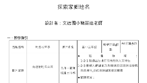 認識家鄉地名的由來和演變,培養探索家鄉地名的興趣及技能,覺察探索地名是家鄉居民認識家鄉的方法之一。