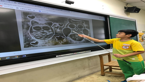 2.透過觸屏鏡射功能及時展示版畫製作學生作品。